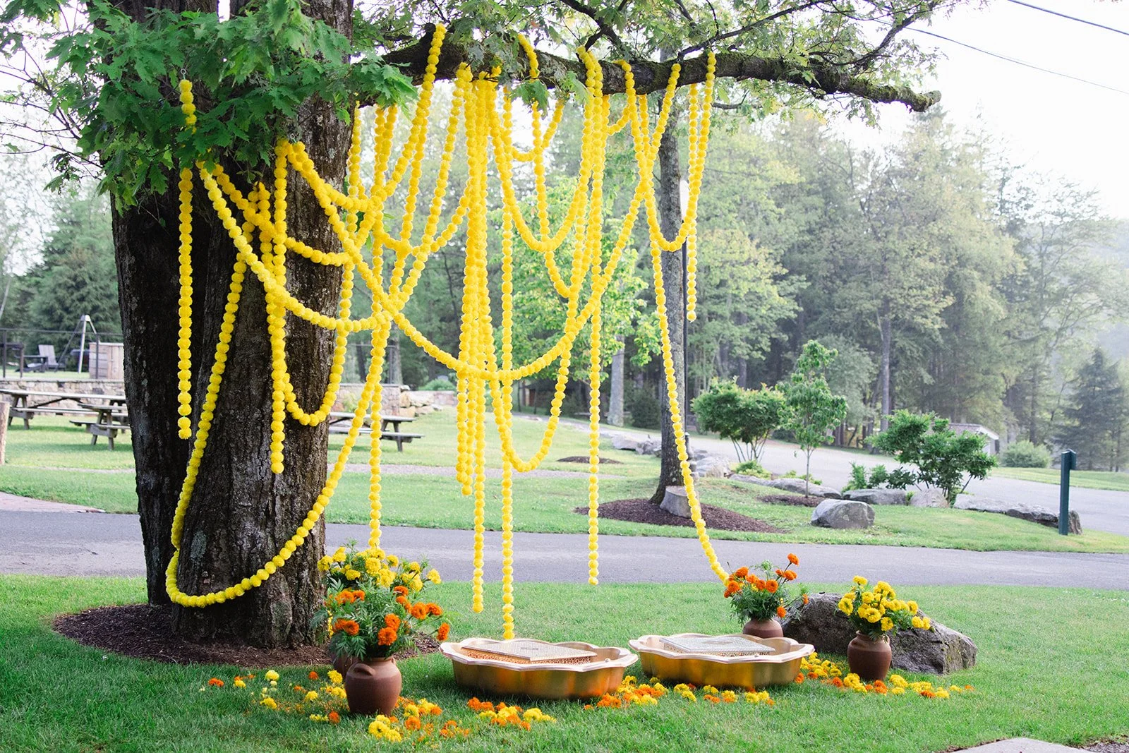 Abby and Levi’s July wedding at Cedar Lakes Estate was a masterclass in modern minimalism—proof that a pared-back aesthetic can still feel elevated and full of memorable moments. Their multicultural celebration began with an intimate rehearsal dinner at Fumo on Manhattan’s Upper West Side, where guests gathered for a warm, understated evening. The weekend officially kicked off at Cedar Lakes with a spirited field day and picnic lunch, followed by a vibrant Haldi ceremony beneath a sprawling oak tree, adorned with yellow and orange floral garlands. A Mediterranean-style dinner and heartfelt toasts from family and friends rounded out the day.